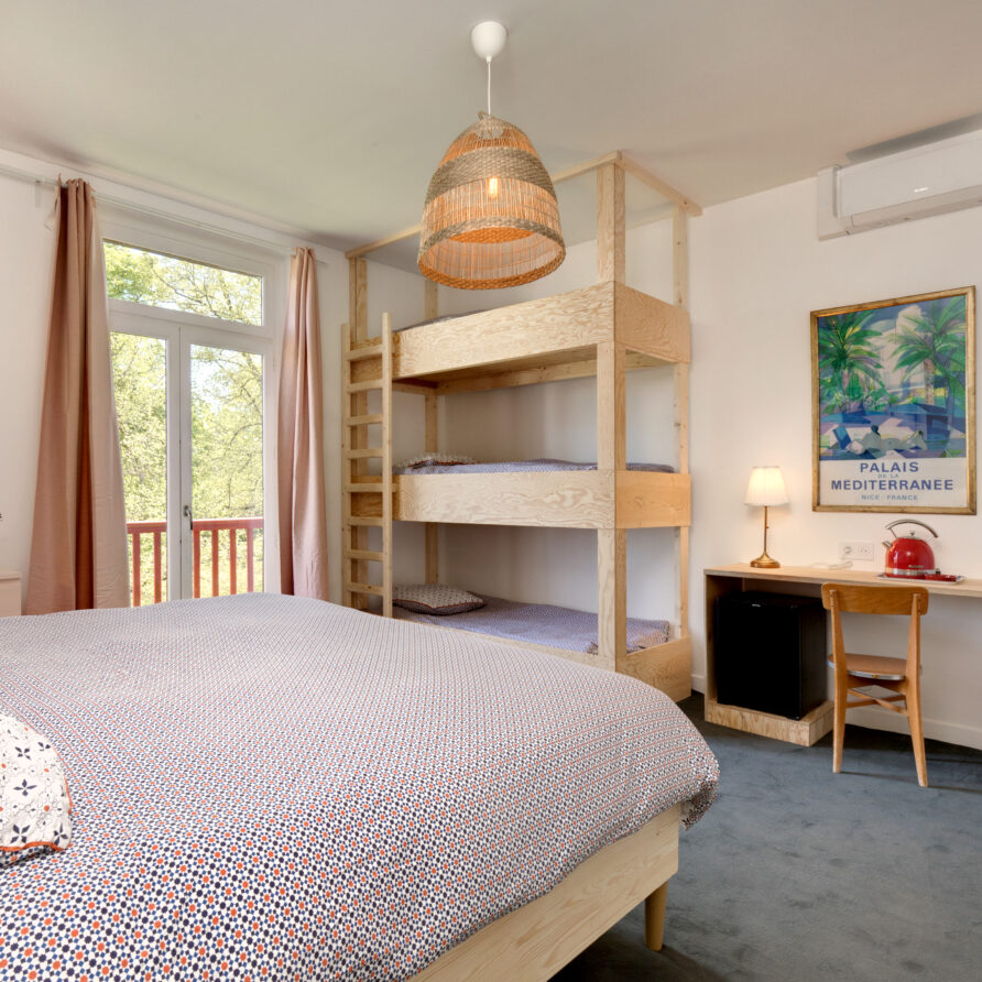 - Type de lit : x1 lit queen size + x2 lits 140 superposés